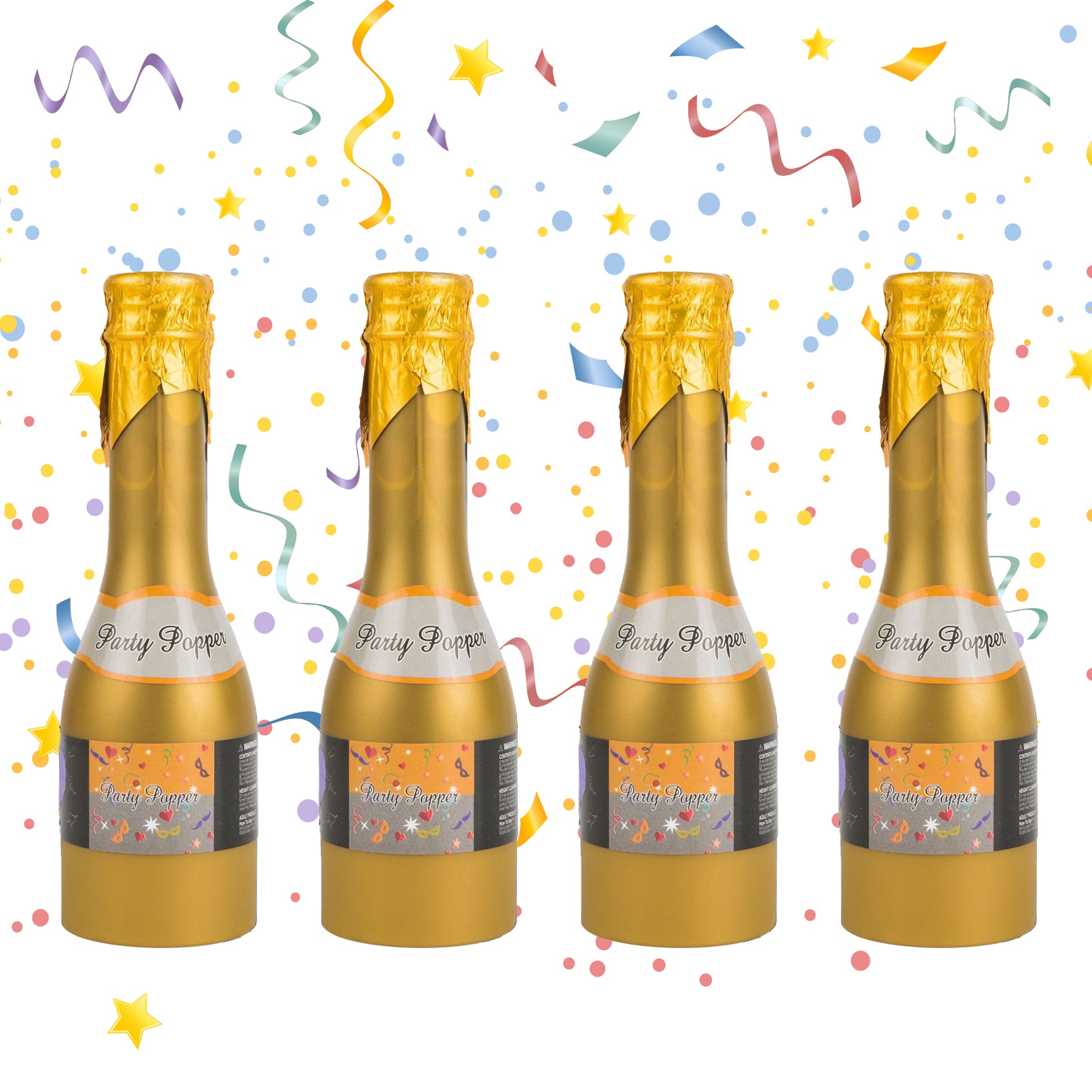 4 Pack of Mini Champagne Bottle Confetti Poppers Cannon for Party