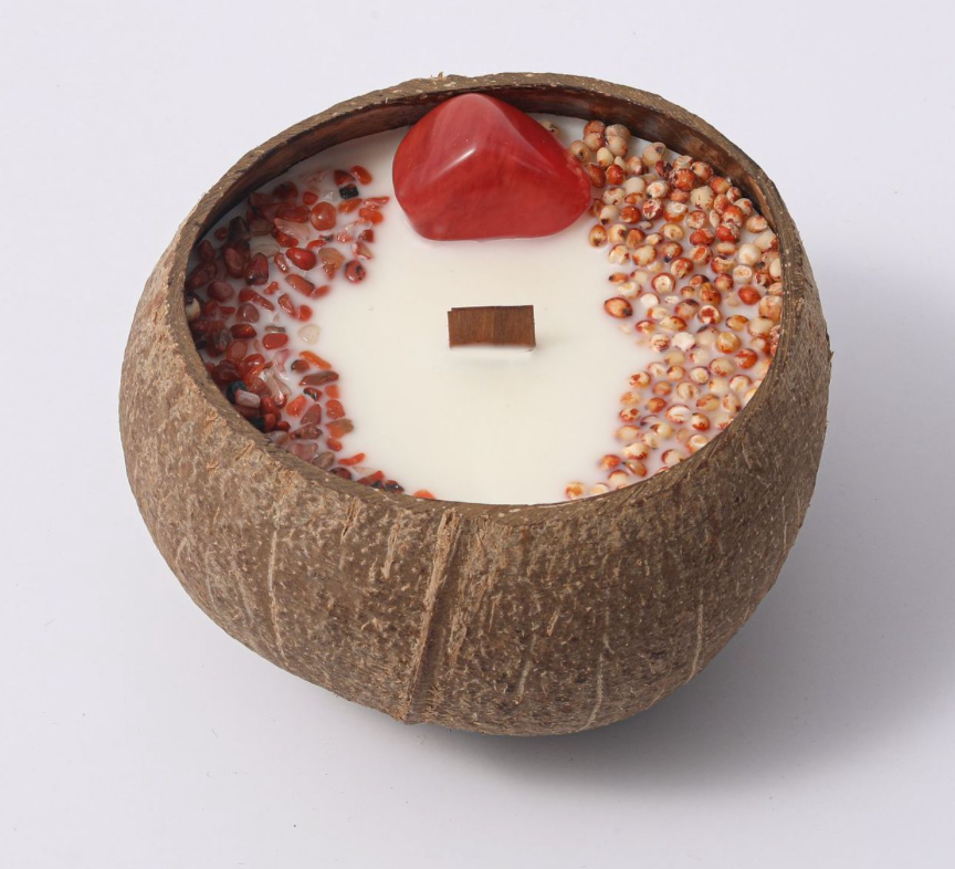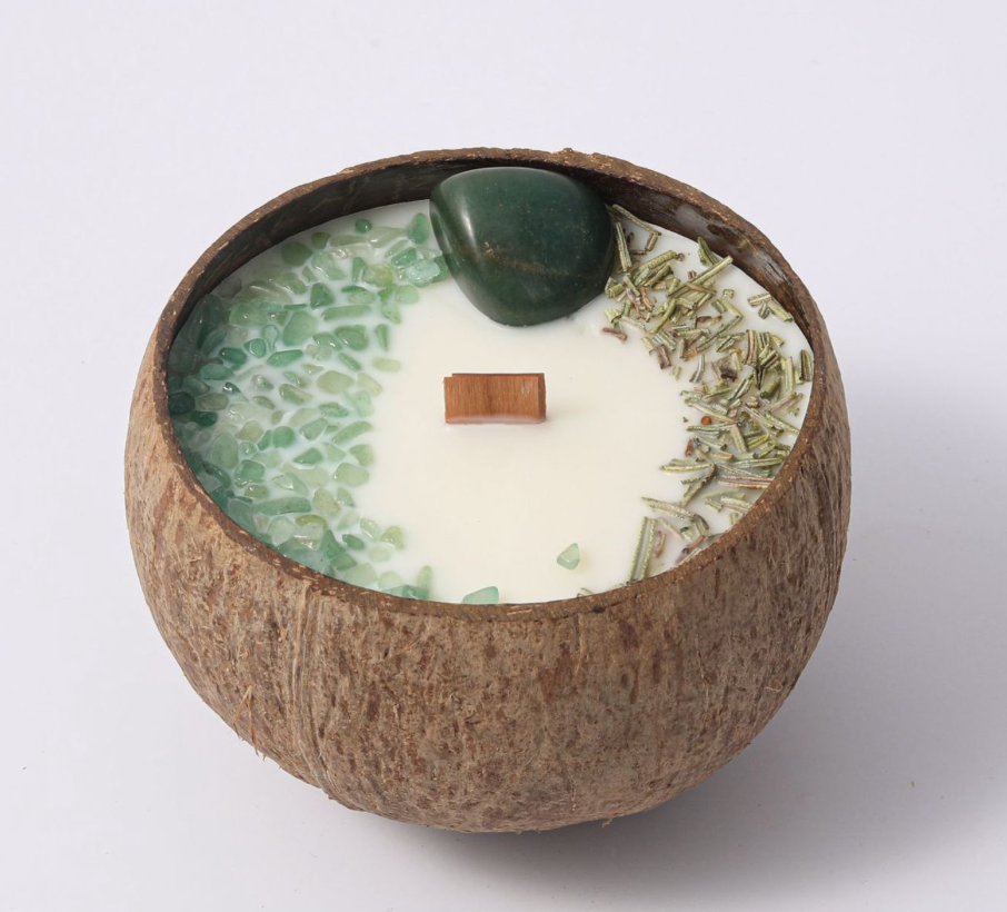 - Natural & ECO:candles with crystals inside Crafted with natural soy wax and infused with carefully selected essential oils, natural candles are not only non-toxic but also sustainable.Coconut shells as a naturally biodegradable material are used as an eco-friendly alternative.
