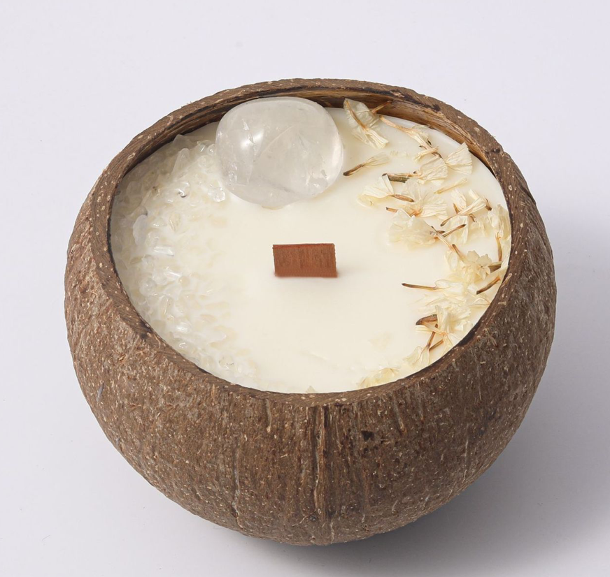 Aromatherapy Candle with Crystals Healing Scented Candles coconut shell