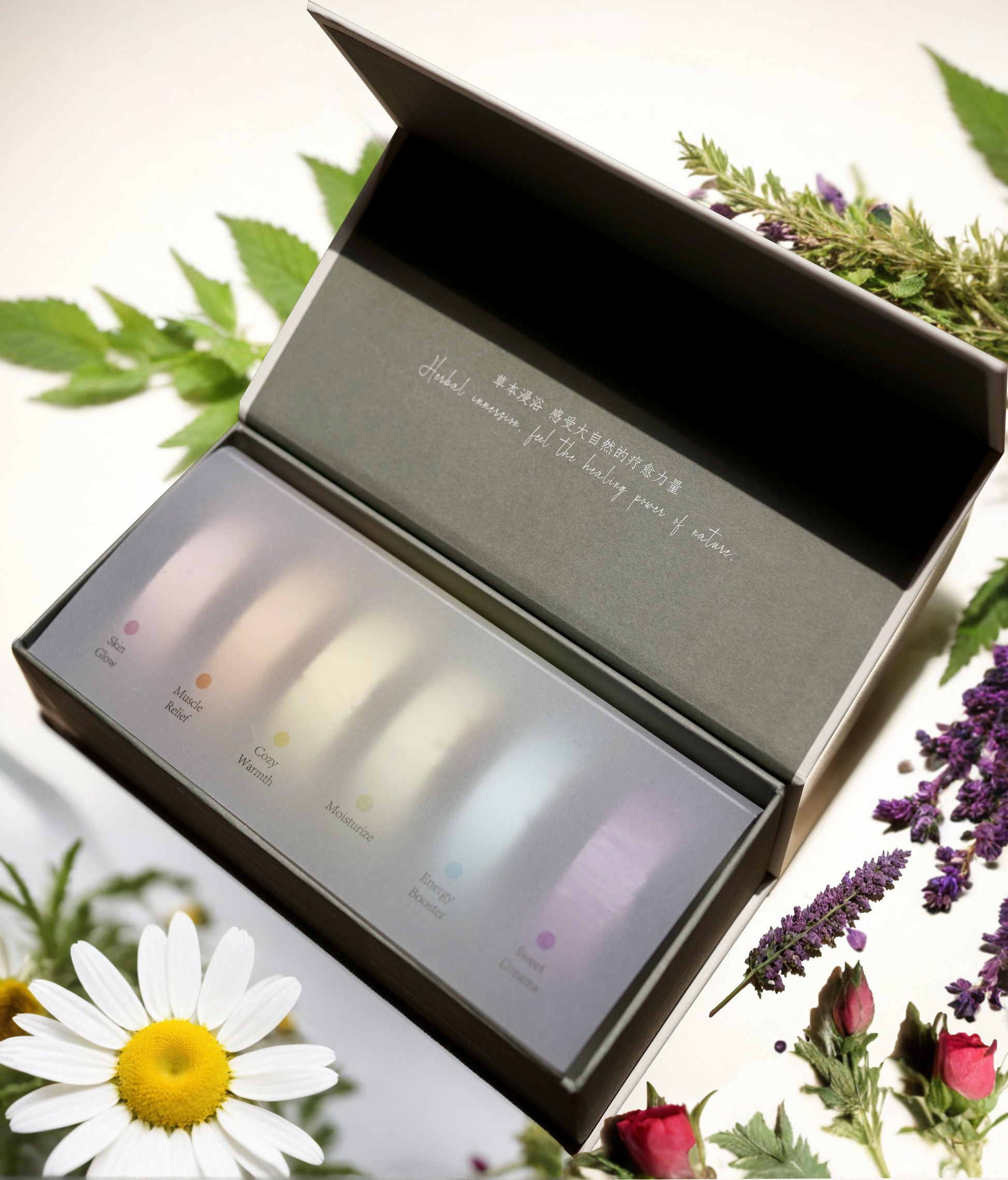 Inspired by the ancient Eastern wisdom of herbal healing, we have carefully crafted bath bombs infused with selected botanical ingredients.In Asian culture, whether it’s a foot soak or a full-body herbal bath, these practices have long been regarded as essential methods of wellness—promoting metabolism through sweating and helping the body eliminate toxins and waste.However, traditional herbal products are often associated with strong odors and complicated preparation methods. That’s why we use scientific extraction techniques to distill the active components of herbs into essential oils—preserving their original benefits while significantly reducing pungent smells.